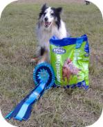 I started doing a little training with Merlin, nothing too serious as like I said to his owner, my priority was for Merlin to settle in to his new home and if he didnt want to do agility, he would be staying put! Well, Merlin did brilliantly at one of his first shows in the following season and came home with a rosette and a trophy...hurray!! We went to Supadogs (one of the biggest shows in the Country) in May 2006 and I couldnt believe how well we did. Merlin won, not one but TWO novice classes, each with over 100 medium dogs in. I was so proud of him. . . he was into Senior! The following year at Kernow K9 Merlin went Advanced (now known as Grade 7) after having his FOURTH agility win...there was no stopping the little blue boy!!!