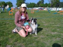 Merlin and I with his Reserve Championship Ticket, Rosette and Crystal Vase!