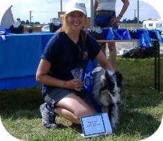 Our dreams came true at Agility Club's show in July 2008, when we qualified for Crufts!!! Finally, we would get to compete on the green carpet after watching it for many many years and wishing to be there. The day that we qualified was one of the hottest of the year and Merlin managed a clear round in every class (6 runs in total), including one of our greatest achievements winning the Reserve in the Champ Class...what an incredible day...no wonder Merlin is yawning in his photo!!!