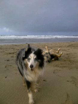 Merlin with his rosette and crystal glass at Agility Club 2007 (above left) when we qualified for the Olympia Semi-Finals. . . and at Dordale in 2006 (above right) when he won a trophy at one of our first shows together . . .and more recently in 2012 on the beach at Gwithian chilling out (below)