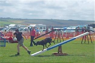 Chico showing no fear on the seesaw . . . its now his favourite obstacle and hard to stop him from running up it!!!