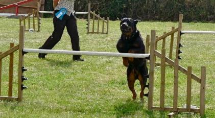 With a heady mixture of nerves and pride, we went our first show, and Chico was an absolute pleasure to run with, managing to complete his first Agility course with just 10 faults. We gradually started competing in more and more shows, with confidence and enjoyment growing all the time, and due to the lack of Rotties competing in shows Chico started to become quite a well-known dog! To our great joy, after about a year of competing, Chico earned his first 'Clear' in a full agility class. We were very proud of this achievement - even at grade 1, to complete a course without fault, in time is no mean achievement, and we never forget that.