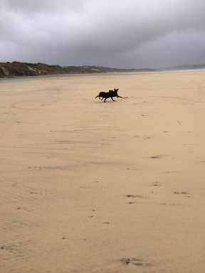 I got to go to the beach! It is a different beach than I go to normally but it was BIG and it was raining. I don’t mind the rain, I like the water and I swim! Nero and Blue came to and some other people from agility! We all played together and I ran with Patrick and we ran and ran and ran on the sand, in the water and into each other! He knocked me over and rolled onto my back! We got very wet and then we went home. I did some swimming in some pools on the way to the car and I was very wet!